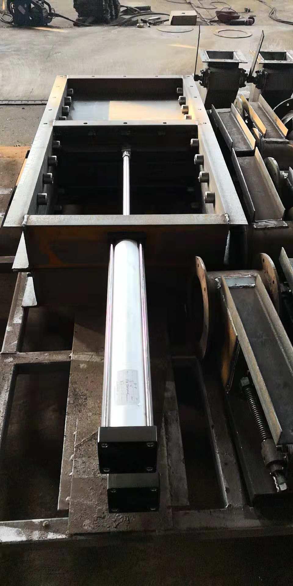 氣動插板閥: 氣動插板閥結構特點:氣動單向平板閘閥采用鋼板焊接結構,配重桿自復位機構,結構緊湊,工作平穩。氣動插板閥、氣動雙向平板閘閥該閘門主要由框架、閘板及氣缸組成,氣源通過電磁換向閥帶動氣缸,氣缸帶動閘板作水平方向的往復運動,達到閥門的啟閉目的。閘閥結構簡單,重量輕,操作靈活,裝拆方便,采用 碳素鋼制造,其強度高,性能好,使用壽命長;絲桿及螺母采用了軟防罩結構,不受外界粉塵影響。